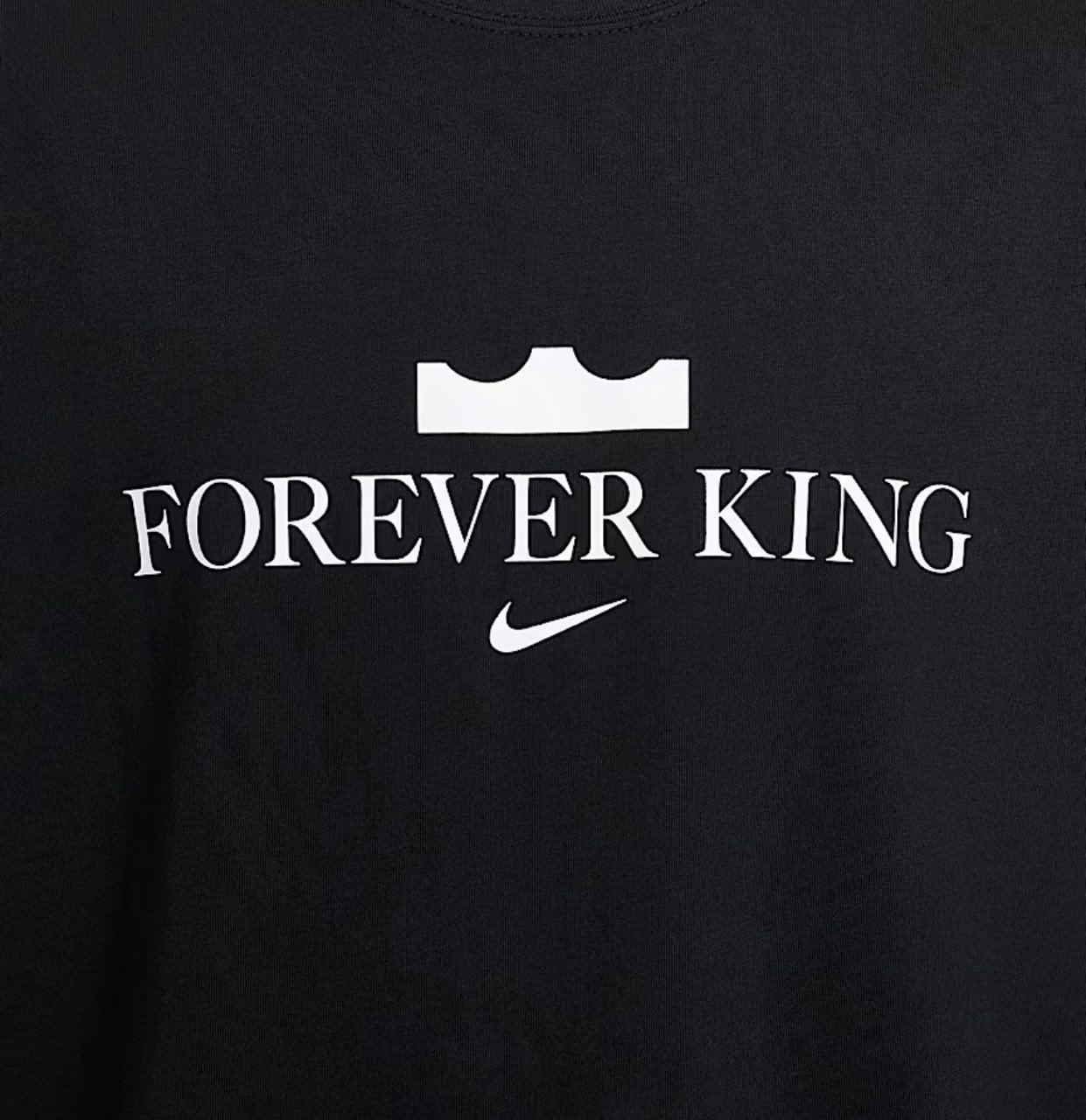 衣服的正面印有“Forever King”字样,而背面则是大有来头,描述了詹姆斯辉煌职业生涯的缩影。